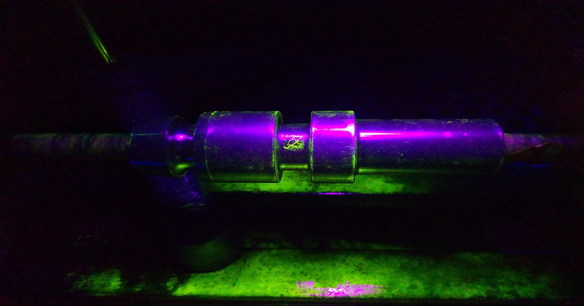 下の写真は円筒部品のきずを見つけたところです。