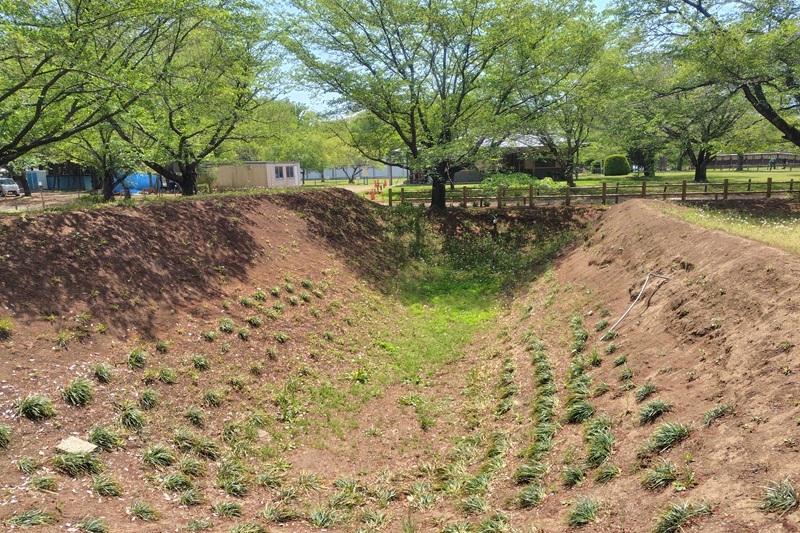大規模な外堀があり、幅は10mくらいはあったと感じました。