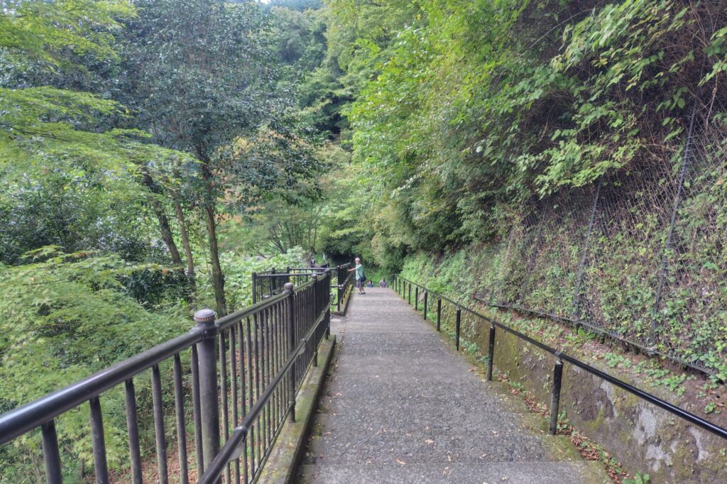 白糸の滝は渓谷の中にあるため、階段で降りていく必要があります。
